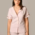 The button up stretch cotton pajamas feature a stylish button-up front, giving them a timeless, polished look. Combined with stretchy, breathable cotton fabric, these pajamas are perfect for women who want to stay comfortable without sacrificing style.