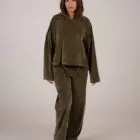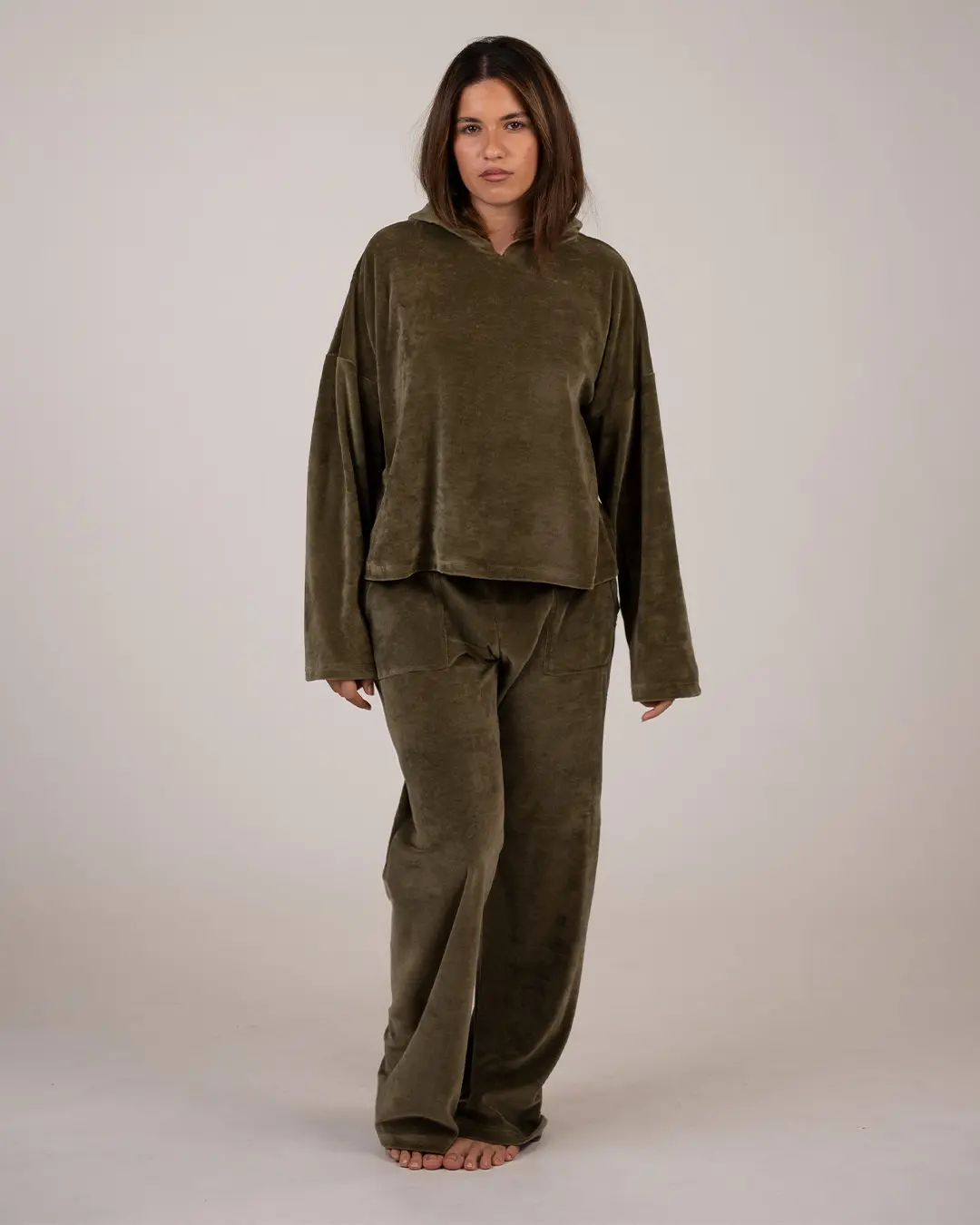 The velvet women’s jogging set features a stylish silhouette that balances comfort with structure. The relaxed-fit top pairs effortlessly with jogger-style bottoms, creating a flattering look for all body types.