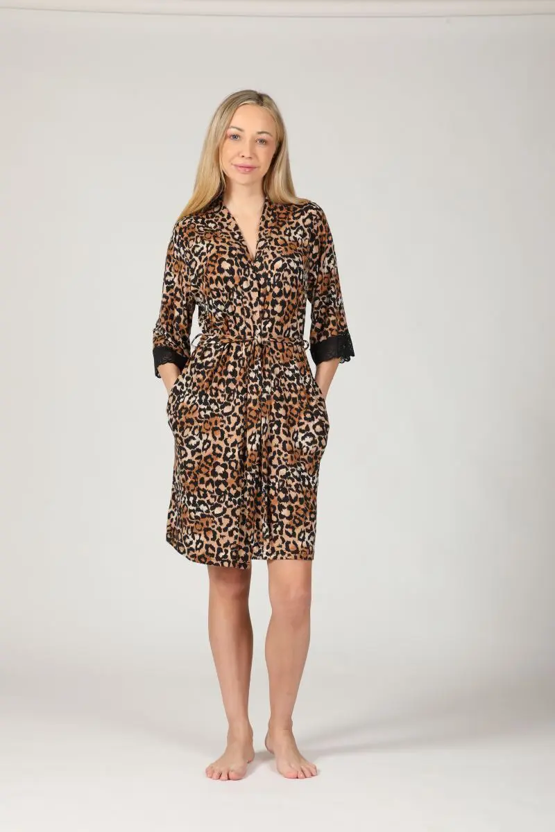 The women’s Robe with lace features a relaxed A-line shape that skims the body without hugging too tightly. The adjustable straps and soft bust line offer subtle structure and a customized fit.