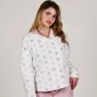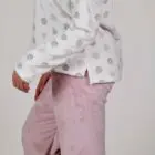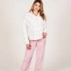 The warm fleece pyjama set features a relaxed-fit top and matching bottoms, ensuring unrestricted movement and a flattering silhouette. The easy-to-wear design makes this set both functional and stylish.