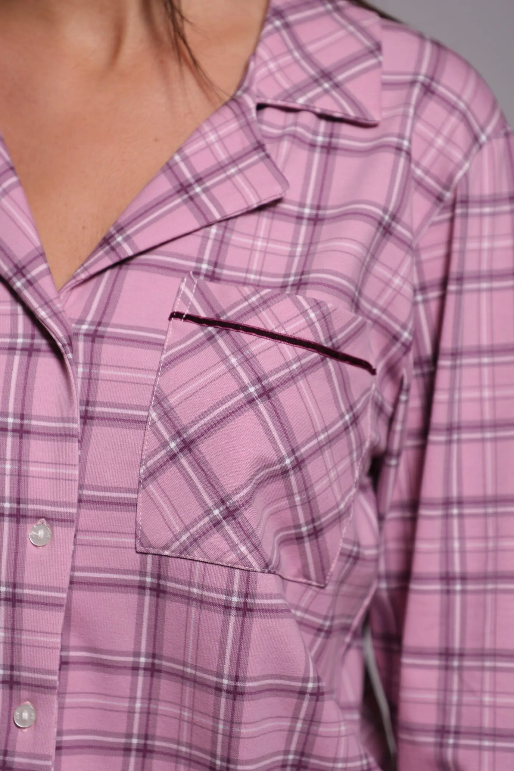 The soft button up women’s pyjama is made from premium-quality fabric that feels gentle on the skin. Its lightweight and breathable texture keeps you comfortable all night long, making it ideal for any season.