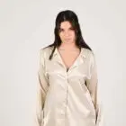 Crafted from high-quality satin, the button up satin pyjama with lace offers a soft and breathable fit, ensuring all-day and all-night comfort. Its lightweight fabric allows you to move freely, making it ideal for lounging, sleeping, or even a cozy morning at home.