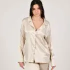 The button up satin pyjama with lace features a classic button-up top, giving this nightwear set a sophisticated look. Combined with intricate lace detailing, this pyjama set ensures you stay stylish even at home.