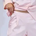 The button up satin pyjama with lace features a classic button-up top, giving this nightwear set a sophisticated look. Combined with intricate lace detailing, this pyjama set ensures you stay stylish even at home.