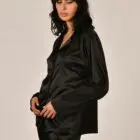 The button up satin pyjama with lace features a classic button-up top, giving this nightwear set a sophisticated look. Combined with intricate lace detailing, this pyjama set ensures you stay stylish even at home.