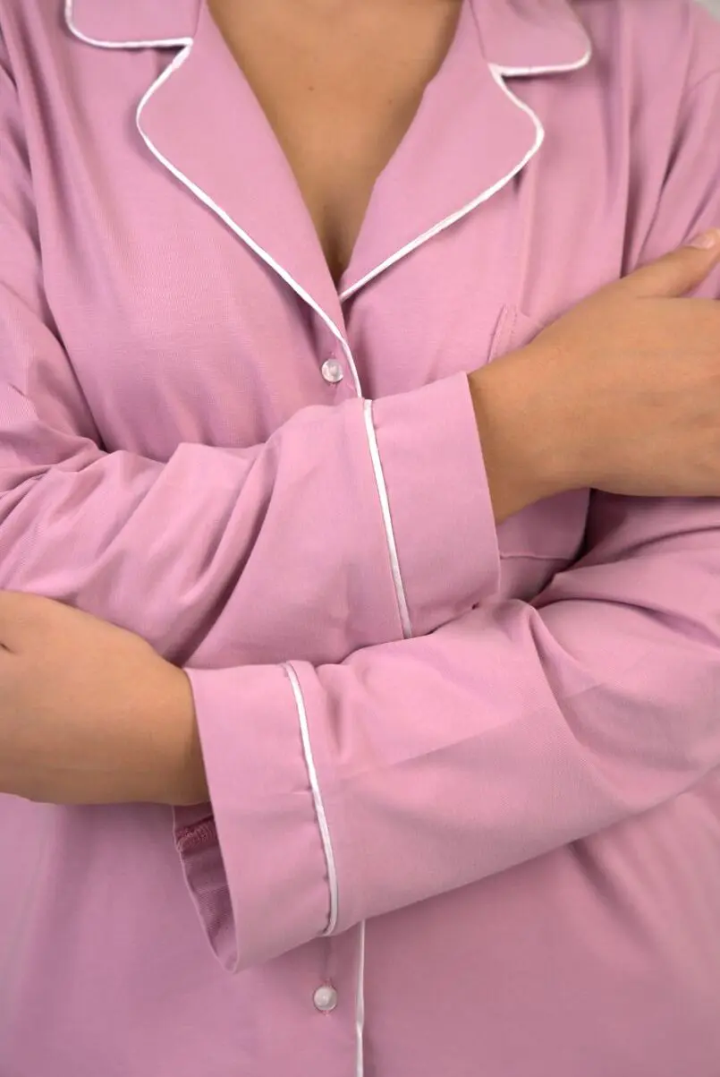 The soft button up women’s pyjama is made from premium-quality fabric that feels gentle on the skin. Its lightweight and breathable texture keeps you comfortable all night long, making it ideal for any season.