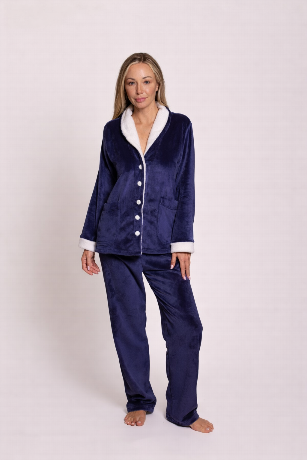 The button up women’s fleece pyjama is more than just sleepwear—it’s designed to be versatile and practical. Its durable stitching and high-quality material ensure long-lasting use, making it perfect for lounging or sleeping.