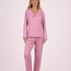 This pyjama set features a timeless button-up top with a flattering fit and relaxed bottoms for ease of wear. The elegant design strikes the perfect balance between casual and chic.