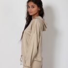 The women’s hooded velvet top transitions seamlessly from lounging at home to casual outings. Pair it with joggers for a cozy look or with jeans for a more polished appearance.