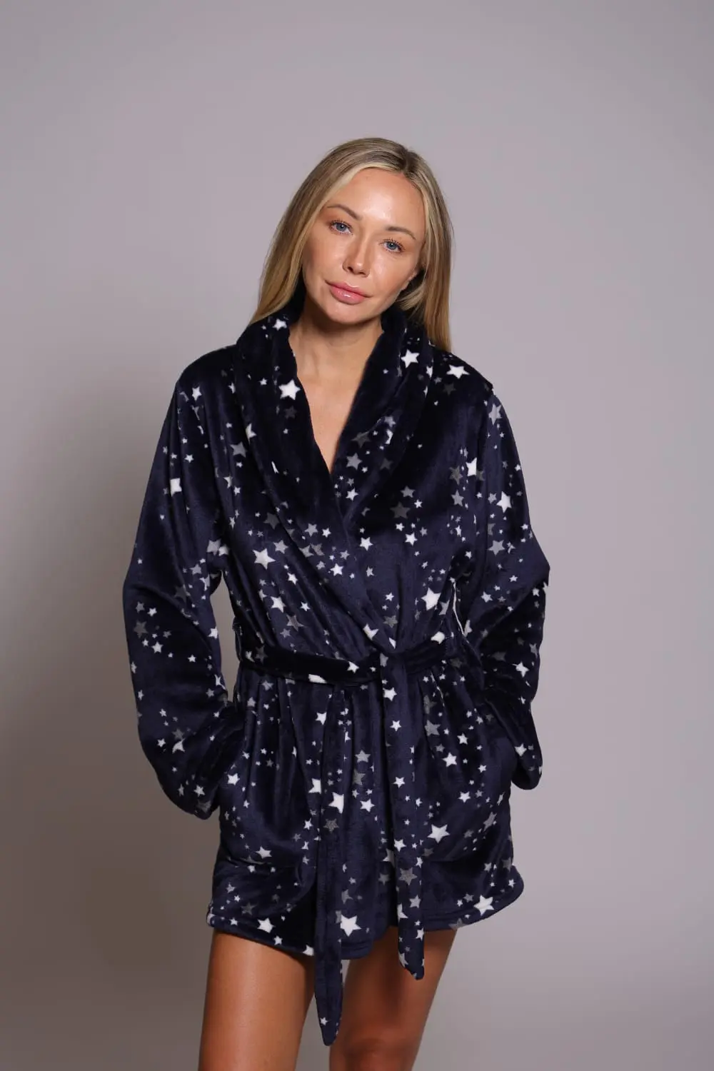 The polka dots women’s robe combines whimsical style with a flattering silhouette. The adjustable belt cinches at the waist for a tailored look, while the relaxed cut allows for easy movement.