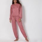 From lounging to casual outings, this jacket is the ultimate in versatility. Pair it with matching pink velvet joggers for a coordinated set or wear it with jeans for a more laid-back style.